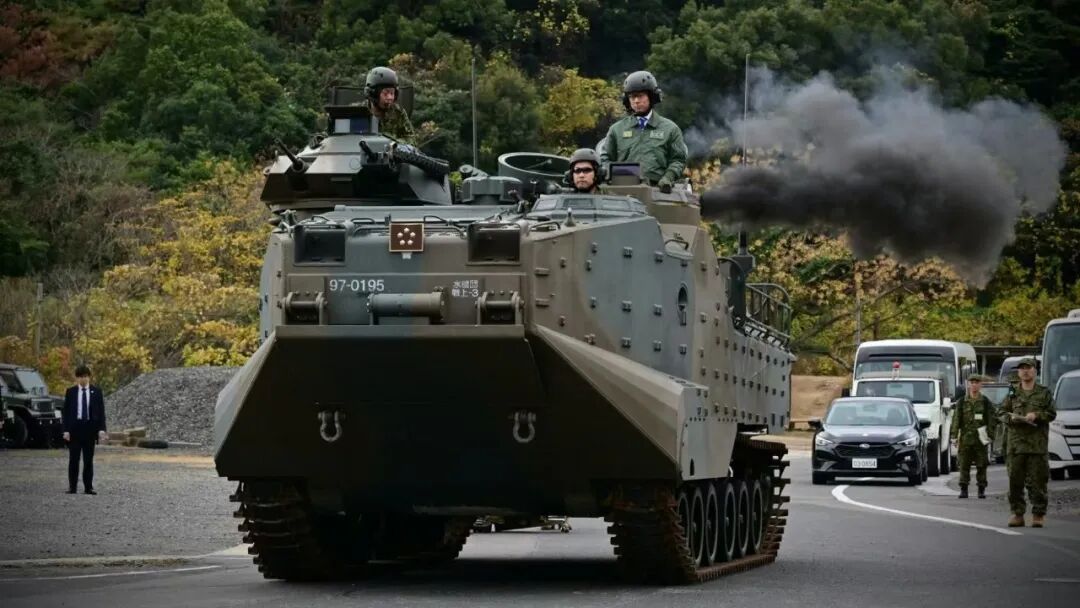 ▲2025年12月,日本防卫大臣小泉进次郎在出席长崎县佐世保市的陆上自卫队相浦驻地演习活动期间登上水陆两栖战车。他在讲话中渲染地区安全威胁,并宣称将加强西南地区防卫体系。