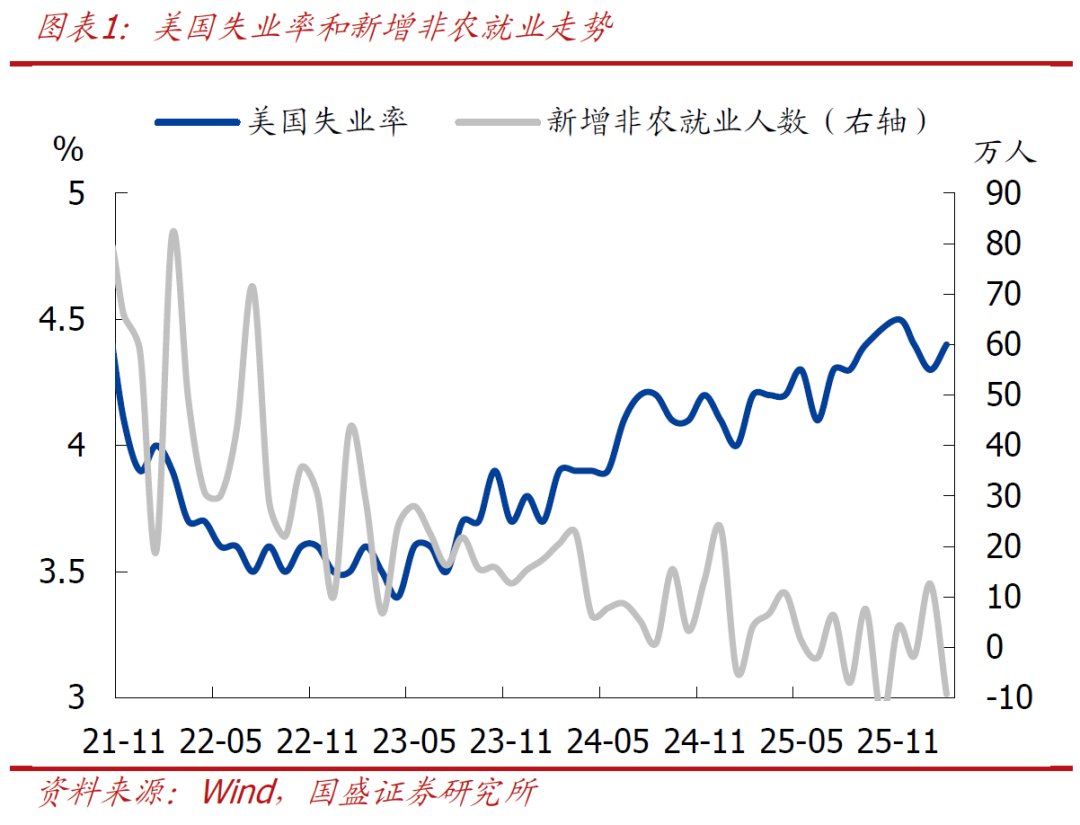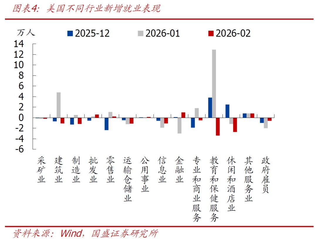>非农缘何大降:本次非农新增就业大幅不及预期的原因主要有四:1)2025年来持续支撑非农的医保行业本次表现较差,主要是受到1月底以来凯撒医疗集团(Kaiser Permanente)医护人员罢工的影响,本次罢工人数超3万人;2)美国2月初的冬季风暴和极寒天气对建筑、运输仓储及休闲酒店等天气敏感型行业的用工活动造成阶段性扰动;3)部分互联网公司裁员以及政府部门持续裁员亦对就业形成拖累;4)1月企业生死模型的更新在技术层面强化了非农的顺周期性。当然,本次非农大幅不及市场预期,本质还是美国劳动力市场依然脆弱,松弛化进程仍在继续。
